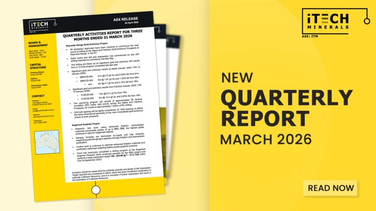 iTech Minerals (ASX: ITM) is a South Australian-based exploration company and is focused on discovering Gold, Antimony and Lithium resources at its Reynolds Range Project in the Northern Territory, as well as advancing its large 35.2 million tonne graphite deposit on the Eyre Peninsula in South Australia.
